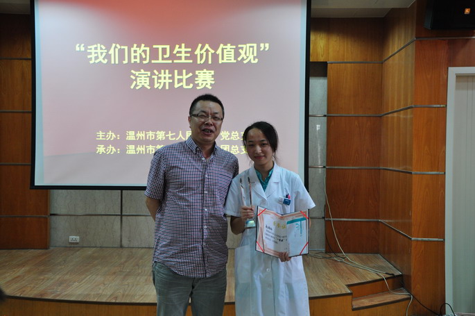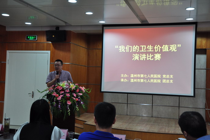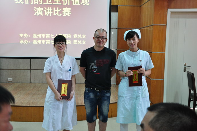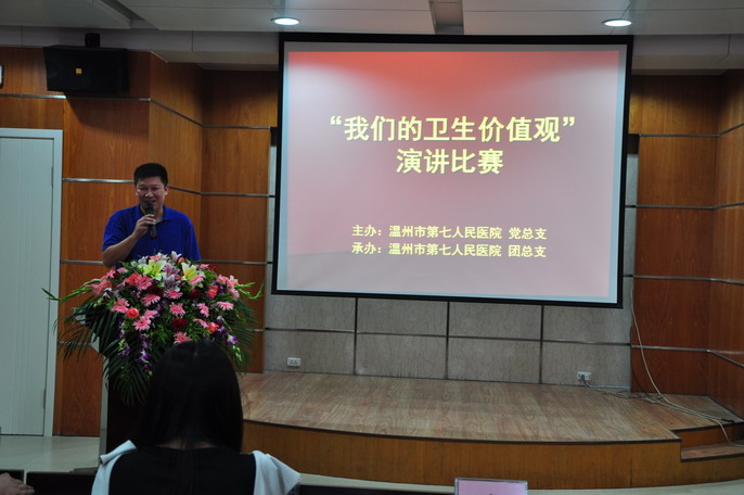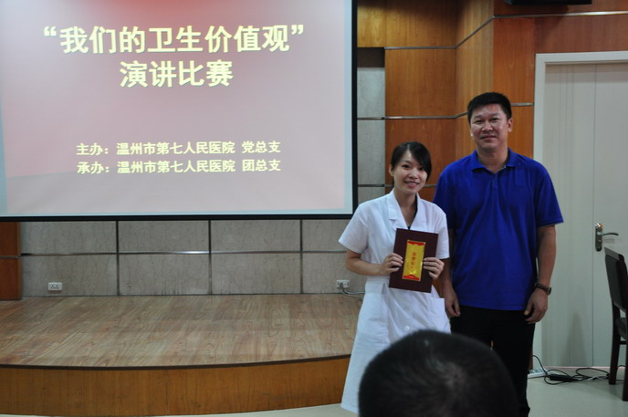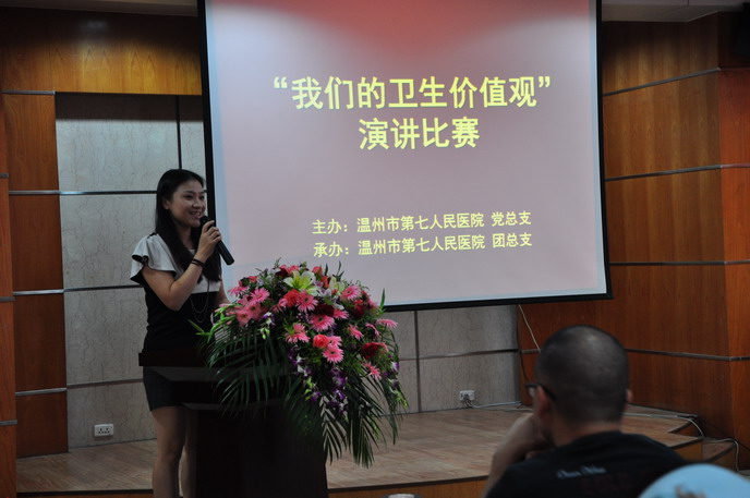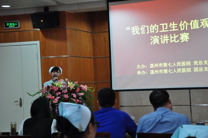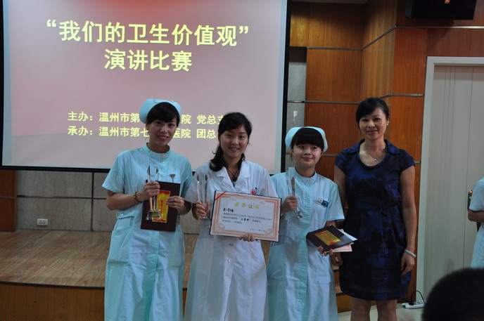 为深入学习贯彻党的十七届六中全会及市第十一次党代会精神,凝练并大力弘扬体现社会主义核心价值体系的医疗卫生职业精神和职业道德,以邓小平理论和“三个代表”重要思想为指导,全面落实科学发展观,深入实施“三生融合、幸福温州”总战略,根据浙江省卫生厅党组和中共温州市委的部署,深化温州卫生文化建设,按照中共温州市卫生局委员会文件《关于开展“我们的卫生价值观”大讨论活动的通知》(温卫党[2012]18号)的精神,我院党总支在全院范围内开展“我们的卫生价值观大讨论”主题演讲比赛。2012年8月31日演讲比赛拉开帷幕,由胡立荣院长,施肖峰书记,林崇光、姜德国、郑维芳副院长,党办卢捷梅主任组成的评委团,另外还特邀了嘉宾评委——温州广播电台著名主持人吴桅老师。选手的演讲声情并茂,让人感动,讲述着一件件工作中真实的事件和坚守本职岗位的信念。比赛结束,吴桅老师专业的点评给参加的选手收获颇多,胡立荣院长慷慨激昂的讲话更是让所有的参赛者和观众为之一振。第七团支部获得了团体一等奖的优异成绩,第七团支部的徐郑玉夺得了个人一等奖。