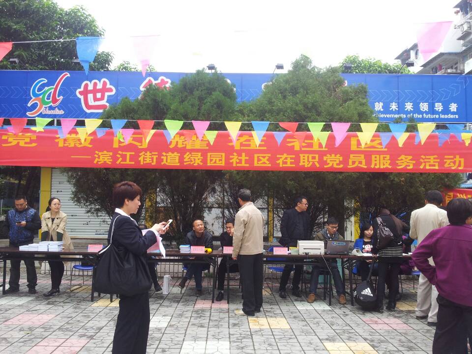 七月份,我院党总支开展“红七月.服务月”系列活动。为使党员志愿者活动常态化、延续化,八月底我院党员志愿者纷纷到各社区报到,并认领了志愿活动类型。11月14日,我院党员志愿者周严灿、张晓丹、陈烨同志参加了滨江街道绿园社区组织的在职党员进社区义诊、体检服务活动。经过两个半小时的活动,三位同志为该社区的123位中老年人测量了血压,并解答了老年人心理健康方面的问题。