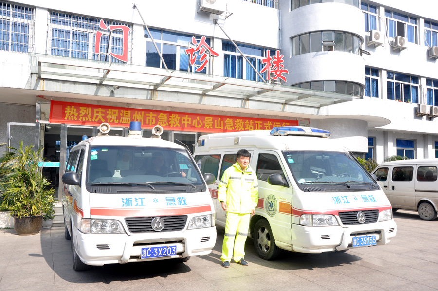 目前,我院为温州市景山急救站落户配备专用救护车2辆,每辆救护车均按温州市急救中心要求,统一急救车标志,安装GPS卫星定位系统,配置相应的专用器材,如担架、氧气瓶、心电图机、除颤仪及各类抢救药品等。