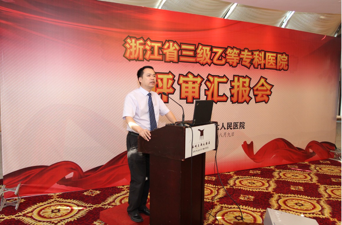 8月9日上午,评审组领导和全体专家,温州市政府副秘书长叶世强,市卫生局局长程锦国、市卫生局医政处处长郑云蒸、我院领导及中层干部等出席了汇报会。会议由评审专家组大组长吴章穆主持。温州市政府副秘书长叶世强代表市委市政府对评审组各位领导和专家致欢迎词,表示此次等级医院评审不但是进一步增强实力、提升水平的手段,更是深化医疗卫生体制改革,促进卫生事业与时俱进的需要,要求我院以等级评审为契机、不断提高卫生发展。