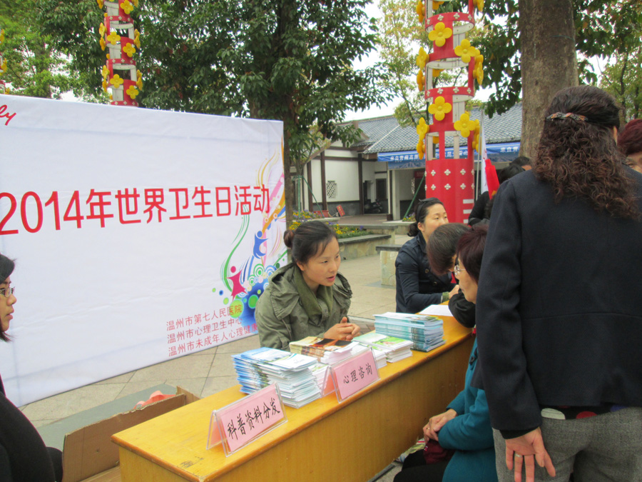 我院抽调经验丰富的医务人员在杨府山公园设立义诊平台,将医疗咨询服务送到群众的身边。对前来问诊的群众提供心理健康咨询、免费测量血压、血糖等服务,同时发放科普资料600多册。我院医务人员还对前来就诊的中、老年人给出具有针对性的个性化心理健康指导意见。