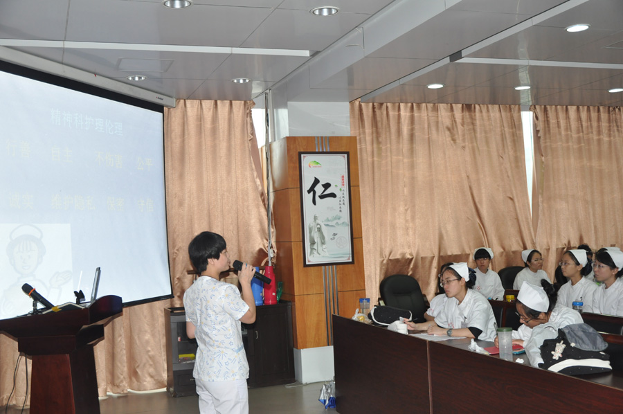 上午九点,首批72名护生头戴护士帽,身穿白大衣,在康复楼六楼会议室,参加了实习前的见面会。会上,我院护理部主任方春霞对实习期间的主要任务和时间安排进行了详细说明,并要求护生们在实习期间严格遵守本院的各项规章制度,虚心学习业务知识,不断提高实践技能。另外,鉴于我院病人容易出现自杀、暴力、逃跑等特殊情况,方主任围绕实习护生可能出现的安全问题进行了强调,特意嘱咐护生在实习期间必须严格遵守医院的安全要求,听从带教老师的安排,勿私自猜测,避免妄自行动,有任何问题随时找带教老师。
