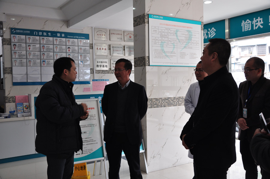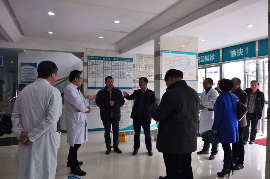 2015年2月23日(农历正月初五),市卫生计生委领导程锦国、吴尚斌带领一行6人,前来我院慰问全体干部职工。 上午十时三十分,程锦国同志一行来到门诊楼向我院领导全面了解了我院春节期间的医疗服务工作和安全生产工作,特别询问了我院病人收治及住院情况。委领导对医务人员的辛勤工作给予了充分肯定,特别对他们在节日期间付出的辛勤劳动表示衷心的感谢,同时勉励他们在新的一年里再接再厉,精益求精。最后,程锦国代表市卫生计生委向我院全体职工表达了最衷心的节日祝福。