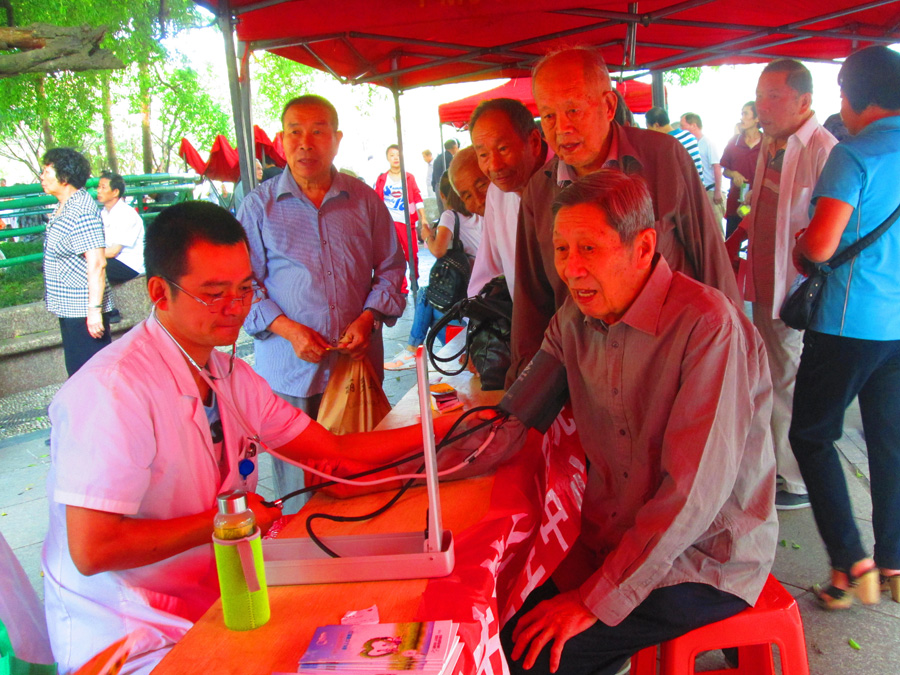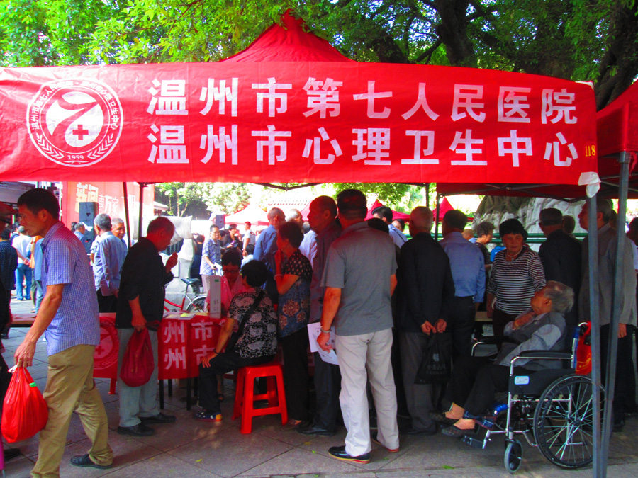我院积极响应由温州市广电传媒集团和鹿城文明办联合主办的“新闻惠万家 文明进社区”系列主题活动。9月27日,我院的洪沪津医师、陈浩然医师参加了“庆中秋,迎国庆”义诊活动。由于市民对心理健康愈加重视,义诊台前排起了长龙,大家都在耐心等待体检和咨询心理健康及精神疾障的相关知识。林科长说:“我们的医师们虽然牺牲了自己的休息时间,放弃中秋节陪伴家人的机会,忙得连喝口水的功夫都没有,但内心依然很高兴,能够服务更多的市民是件值得自豪的事。”当天义诊顺利圆满完成,这也是我院关注市民心理健康、普及精神卫生知识的意一项重要内容。