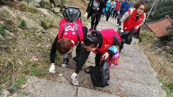 11时左右,所有职工修整完毕后开始下山,这时他们不忘拿出事先准备好的拾捡工具和袋子,沿着山路,在深山中细心捡拾着登山者们丢弃的垃圾,所过之处,带走了垃圾,还原了美丽。更难能可贵的是很多职工还带来了自己读小学或幼儿园的孩子。许多小朋友靠自己爬上400多米的终点,还和爸爸妈妈们在下山途中一起捡拾垃圾。职工们希望通过本次活动,向天真的子女们灌输“不乱扔垃圾”的环保意识。