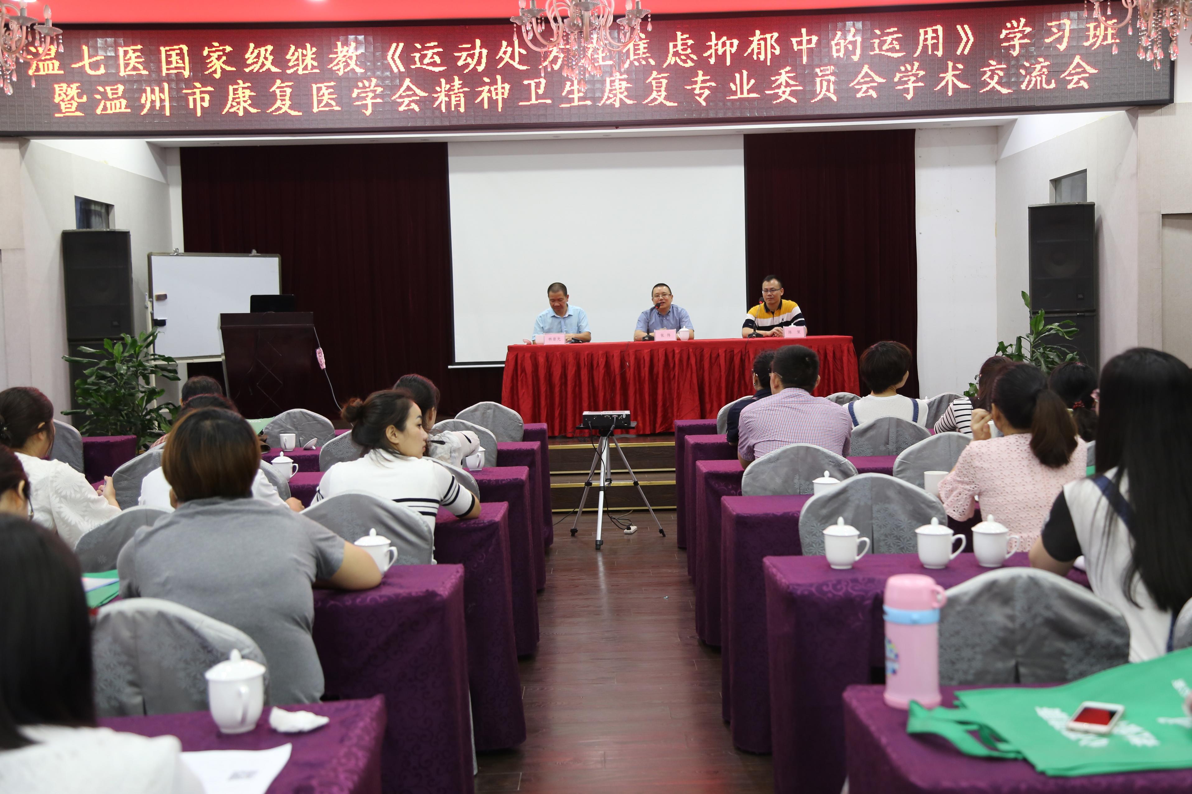 另外,浙江省康复医学会精神康复专业委员会委员郑维芳、温州市康复医学会精神康复委员张伟、以及温州市健康教育协会学校心理健康教育专业委员会委员陈策就当下焦虑抑郁疾病的属性以及在家庭环境、青少年各期的表现形态、治疗特点和运动处方与常规治疗结合方案等为在场学员做了详细的讲解,大家都表示受益匪浅。