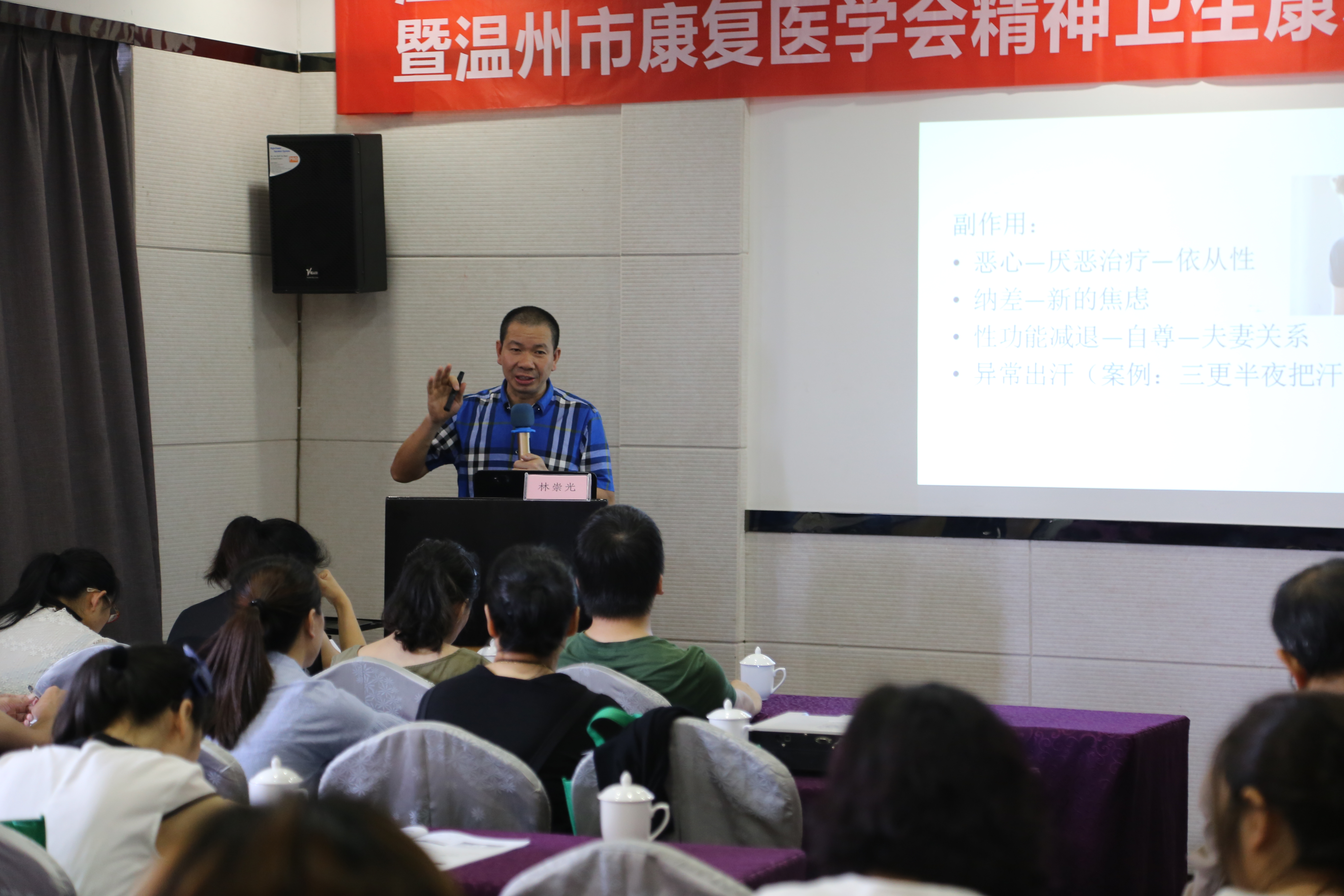 结合自身二十多年的精神医学研究,对临床上遇到的一些常见问题,提出了自己独到的见解和处置心得体会,并介绍和分享了其近几年来运用运动处方在治疗焦虑抑郁中获得宝贵经验,学员们踊跃提问,林崇光教授逐一作出回答,现场互动热烈。