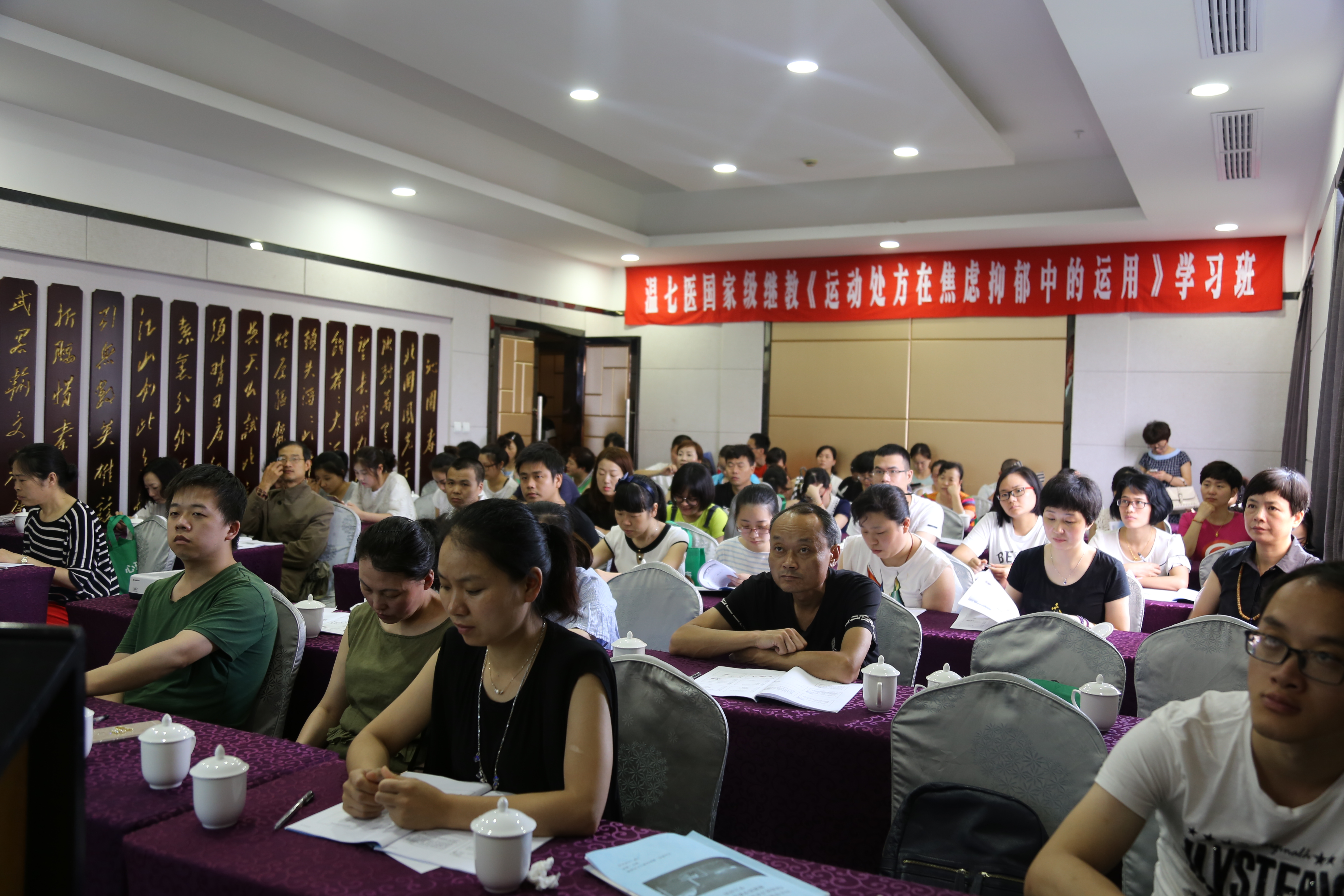 现场气氛热烈,座无虚席,因场地限制无法增加座位,一部分学员仍坚持站在后排听课