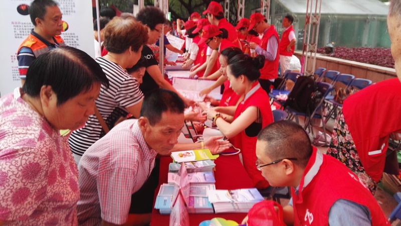 上午7:00不到,我院的党员志愿者们都纷纷赶到了活动现场,穿上了志愿者红马甲、戴上了党徽,整个场面显得红红火火,热情洋溢。刚刚将义诊台张罗好,周围的群众便急切地围上来,虽然天公不做美,时不时下起了阵阵小雨,但这丝毫没有影响大家的热情,各项服务仍有条不紊地进行着开。活动从7点持续到11点,义诊台前的群众一直络绎不绝。