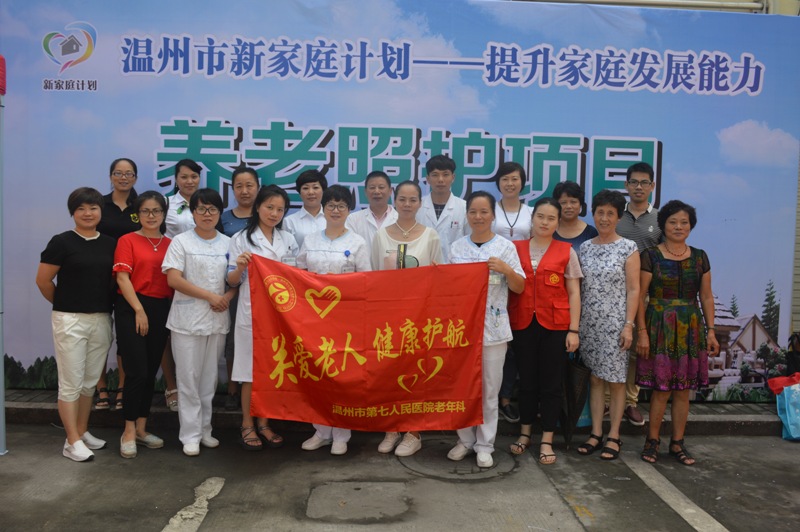 为让老年人更加健康、快乐的享受晚年生活,为老年人提供优质养老照护服务,促进家庭幸福和谐,7月19日上午,我院老年科组织医护人员、心理咨询师积极参加温州市卫计委组织的“养老照护”项目系列活动---走进新桥街道山前社区,为社区老年人进行健康体检,普及慢性病、常见病的预防知识,关注高龄、独居、失能老年人群体的身心健康问题。