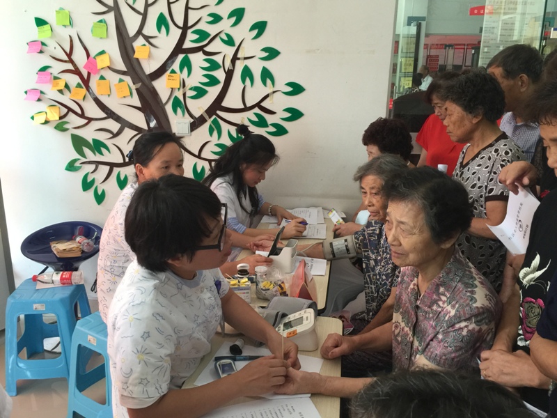 根据社区老年人的总体情况,社区志愿者为老年人建立了健康档案,我院老年科由护士长陈建敏带队,结合老人的健康状况,护士为社区老人进行血压、血糖测量,咨询师为老人进行心理筛查。同时,活动邀请附二医黄汉津教授现场为一些老年人进行会诊,解答关健康方面的咨询并及时给出建议,对老年人常见疾病如抑郁症、痴呆症的预防进行宣教。