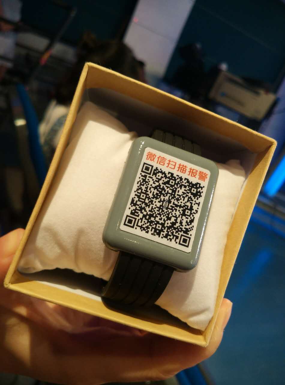 “安心手环”为手表形状,灰色,“表盘”上贴有二维码,并带有防水防震功能,而且通过表带设计,还能防止老人自行取下手环。最主要的是,每一只手环都有专属的关爱编号,如果有人在途中遇到走失老人,扫一扫手环上的二维码就能获知相关提示信息,然后拨打110报警电话,联系其监护人。