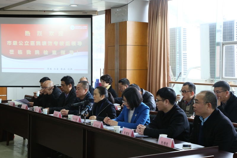 1月13日上午,以市卫计委副主任吴尚斌为领队,医政医管处处长郑云蒸、医管中心副主任潘平为组长的考核组对我院进行2016年度市级公立医院绩效考核。市发改委、市财政局、市人社局、医政医管处、规财处、人事处、中医处、办公室、疾控处、机关党委、监察室、信息中心、医管中心的领导一行二十余人莅临我院进行考核工作。