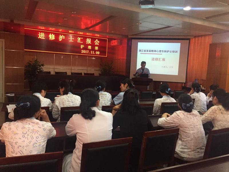首先,专科护士王芳、陈曼通过精美的PPT课件作学习情况汇报。通过1个月的专科理论学习和3个月的临床专科实践,两人在各自导师的全力指导下专科科研意识,科研能力得到了很大的提升;对精神科护理、心理护理的新进展有了更深层次的认识;还学到了放松技术、焦点解决技术、合理情绪治疗技术。他们分别总结了进修医院的护理亮点、创新点,并就我院的现状提出了各自的看法和建议。随后,我院首位参加MECT专科护士培训的李灿灿主管护师也交流了本次培训的心得体会,她给大家分享了最前沿的MECT治疗护理相关信息。