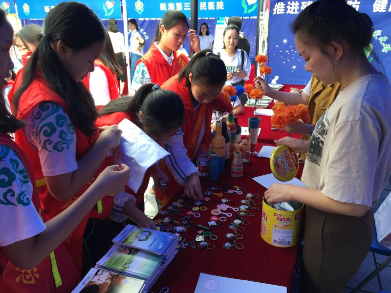 活动启动仪式在瓯海区府广场举行,市七医医务工作者积极参与,并带去我院精神障碍康复患者手工制作的精美工艺品进行义卖,展现该院康者康复成果。义卖吸引了大批热心市民的关注,在了解失七医精神残疾患者康复情况后,纷纷购买手工艺品,献出自己的一份爱心。此外,市七医还为到场的残疾人士提供免费的血压测量,提供精神康复、残疾预防宣传及相关服务。通过展板及发放科普宣传册的形式进行精神疾病宣传。现场测量血压20余人、发放资料100余份。