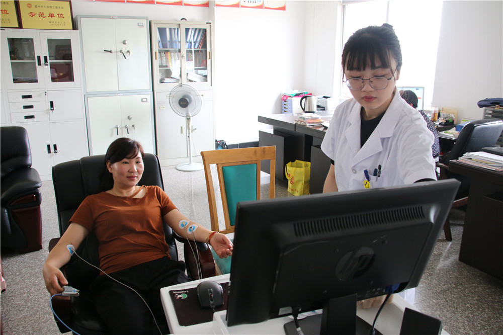 精神压力分析系统采用HRV分析的原理,对受测者的身体和精神压力负荷及功能年龄等情况进行专业评估和分析。当天近20名干部参与了心理和生理压力分析,医生对照有关指数,进行综合解析后发现整理情况良好,仅个别拆迁干部超过临界点。