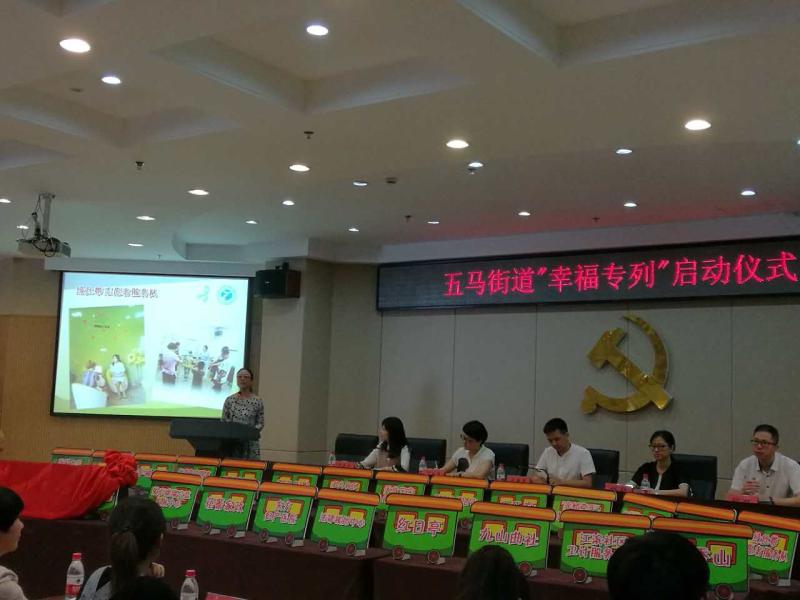 8月24日上午,市七医党办主任陈靖、义工陈亚林等代表我院绿丝带志愿团队参加了五马街道组织的“五马关爱幸福吧”平台社会公益团队合作签约仪式。活动仪式上,22个社会公益团队分别认领了一节车厢,共同伸出关爱之手,仪式最后,五马街道的“幸福专列”装载着满满的爱心响起鸣笛浩浩荡荡地出发了。