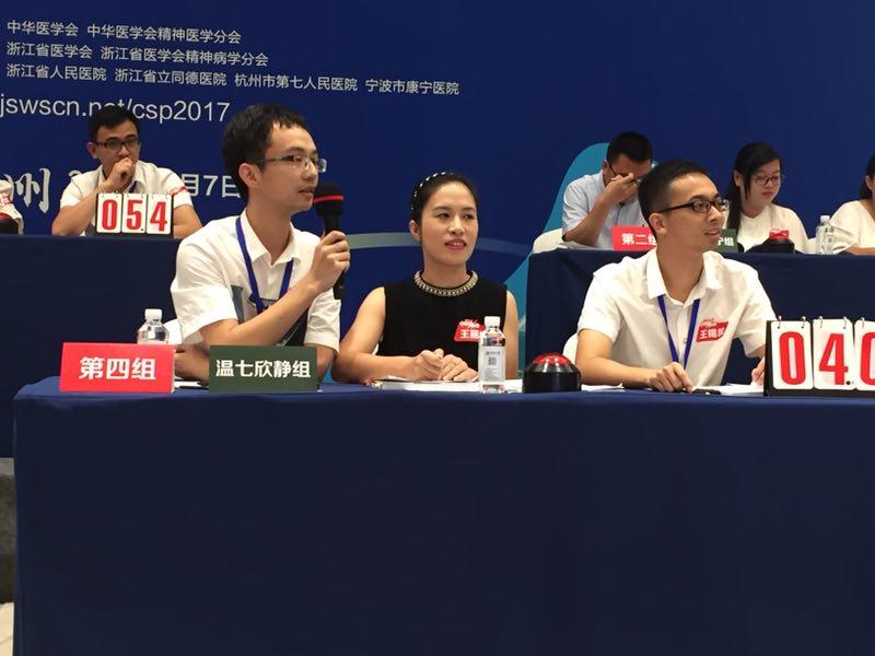 比赛过程中,来自5个赛区的8组年轻选手们展开了一场同道高手之间的较量。此次病例解析赛围绕“抑郁”相关主题,通过设置必答题、挑战题、抢答题、加时赛等紧张刺激的形式激发选手的参赛热情。期间,我院两组选手分工明确、配合默契,就病例现病史、临床检查、辅助检查和量表评估,结合自身专业知识与临床经验基础,对精神疾病的病因、症状、治疗方式等提出了各自独到的见解与分析。现场求助环节,台上提问,台下互动,现场气氛活跃,台下助阵各方对场上求助问题也各自发表自己的积极看法,评委和选手间学术交流氛围浓郁,台下观众讨论热烈。经过众选手的激烈角逐,现场投票和评委们的审慎评分,最终我院两个代表队以总分第一,获得2017中国妙声音(第二季)浙江省总决赛病例解析赛最佳导师团队奖。
