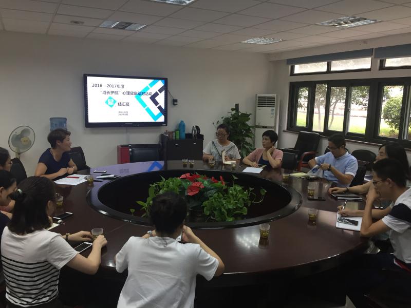 9月29日下午,我院防治科心理咨询师林晓曙一行赴温州市青少年活动中心“心乐园”进行主题为“2016-2017年度12355共青团为你服务——‘成长护航·健起来’”的总结汇报。
