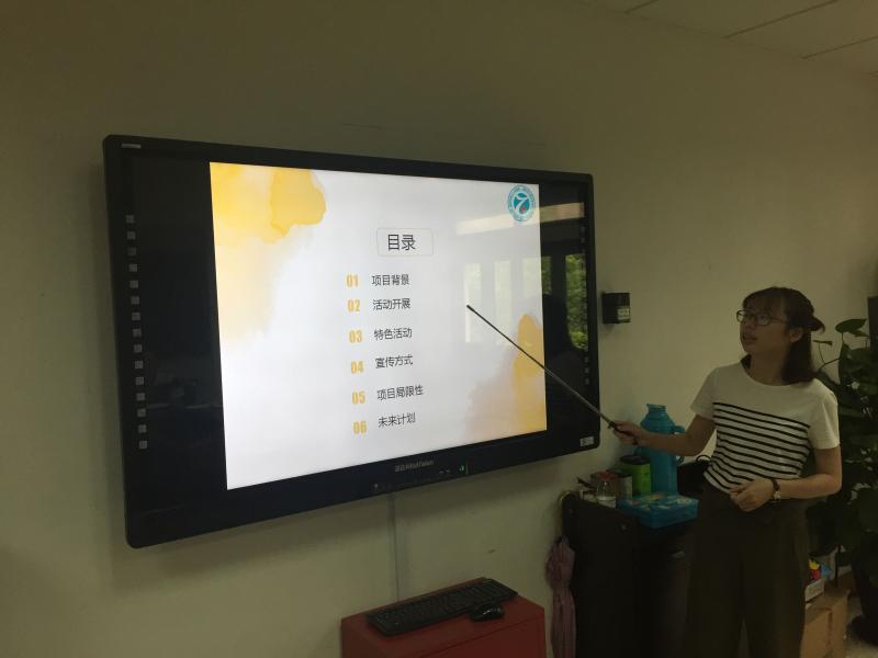 心理咨询师林晓曙就此项目的“项目背景”、“活动开展”、“特色活动”、“项目局限性”、“后期计划”五个方面进行了详细介绍:我院与瓯越小学五个校区结对,医院组建绿丝带志愿团队承担此次项目,志愿团队是个多元化服务团队,包含社会工作者、心理咨询师、心理评估师、护士、医生等专业人才。在活动开展方面,形式包括:心理普查、心理咨询、团体心理辅导、心理知识讲座、主题活动,通过丰富多彩的活动,引导广大学生更好的了解心理学,解答心理困惑,营造阳光、健康的校园精神,塑造积极、乐观的学校生活。使他们更好地迎接成长过程中所面临的挑战,学会决定、交流、拒绝、应对压力及计划未来的技能。汇报最后,就目前此项目面临的局限性提出了针对性的后期计划,吸取经验教训,尽快改正不足的地方,让项目持续性做强做大。