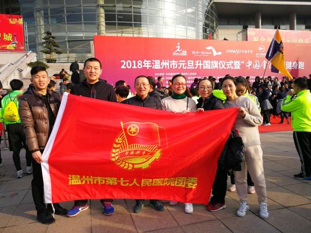 新年伊始,万象更新。温七医团委代表也在健身跑方阵中共同跑进2018年!1月1日上午7点30分左右,升国际仪式开始,雄壮的国歌凑想,国旗冉冉升起,现场所有人庄严肃立,凑唱国歌,向国旗敬礼。