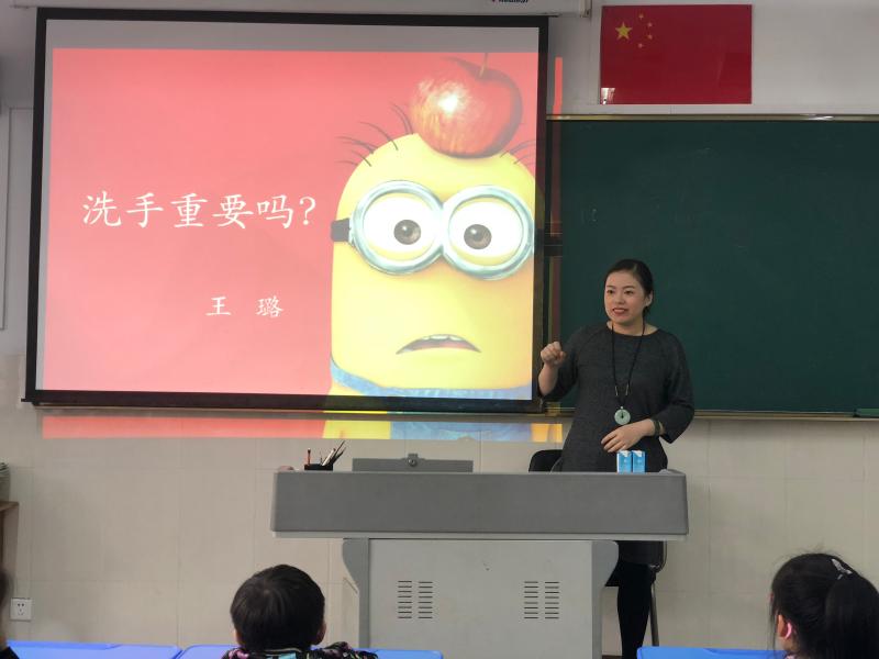临床心理科的主管护师王璐,专门来到南浦小学一年级七班,为小朋友们上了一堂以“洗手”为主题的健康教育课。