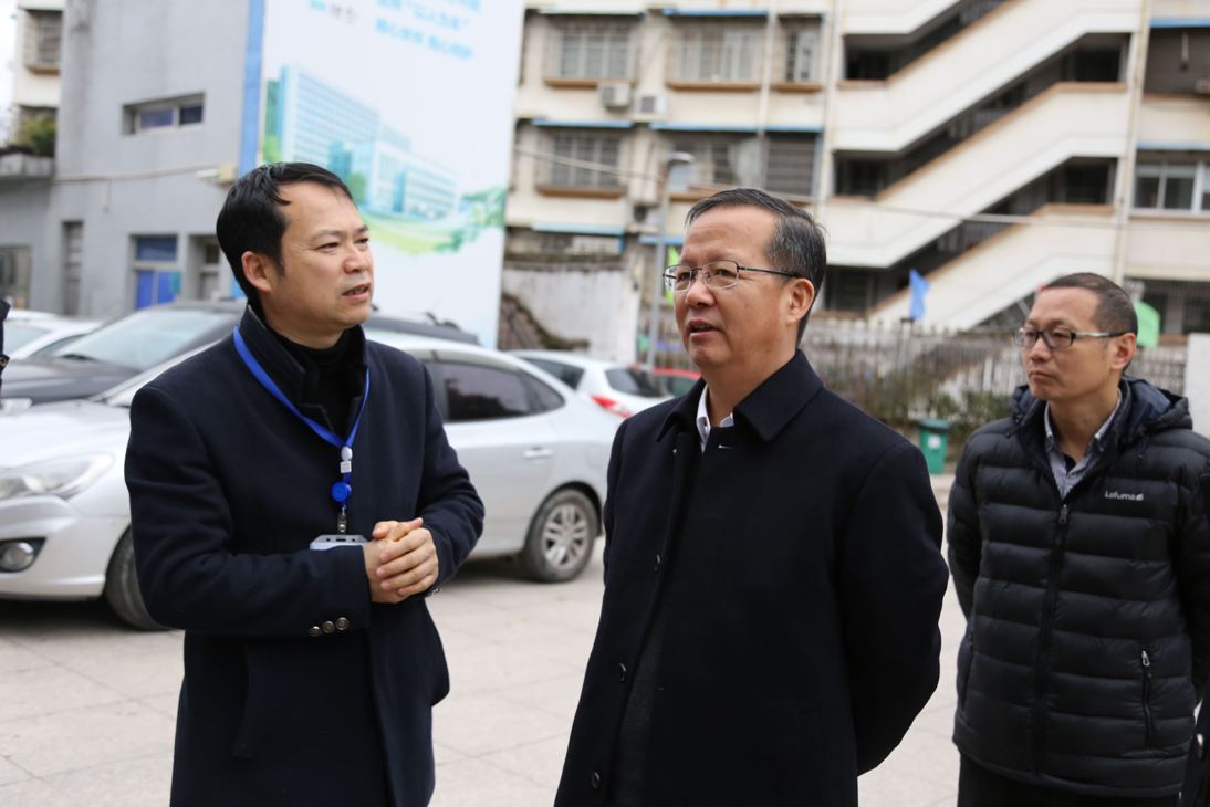 ,在门诊楼前,程锦国一行与院班子领导亲切握手,向大家送上节日的慰问和新春的祝福,感谢广大医务人员春节期间坚守岗位、恪尽职守,为人民群众的健康无私奉献。院长林小东携院班子领导成员陪同。