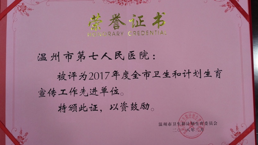 荣获全市卫计宣传工作先进单位荣誉称号。市卫计委副主任陈乐慧出席会议并作工作部署,全市卫生医疗单位、各县市区卫计系统50多名分管领导和科室负责人参加会议。此次会议旨在总结2017年全市卫计宣传工作,部署2018年卫计宣传工作思路。会上,市卫计委宣传处处长项正刚宣读表彰文件,全市6家宣传工作先进单位做典型经验座谈,其余单位以书面形式进行经验交流。我院院长助理陈春棉参加会议。