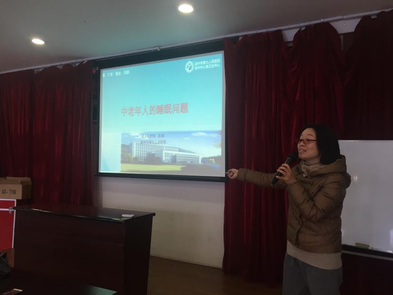 3月21日早上9时许,禁漫天堂 党办主任陈靖来到谢池社区,为社区内失眠症患者带来了一场“中老年睡眠科普知识讲座”,现场听课人数达40人。由于来听讲座的都是社区里的中老年朋友,所以陈靖主任以地道的温州话进行讲课,迅速和她们拉近了距离,耐心地讲解了现在中老年朋友失眠症的症状、引起该症的原因、失眠的危害和相关防治措施。社区主任在听完讲座后表示自己最近也深受失眠困扰,陈靖主任的讲课确实让她获益匪浅。陈靖主任建议如果失眠症严重影响到了日常生活,那就需要尽快到专科医院进行检查或者做相关的心理咨询。在社区里与讲座同步开展的还有免费义诊活动,我院主任医师徐道祥、于明荣、心理咨询师谢展翔及病区护士早早地整理好义诊摊位,为前来咨询的朋友答疑解惑。据统计,现场来测血糖、血压人数达90余人次;发放左金丸、午时茶、板蓝根等常备药品350余盒;发放睡眠科普知识宣传手册500余份。