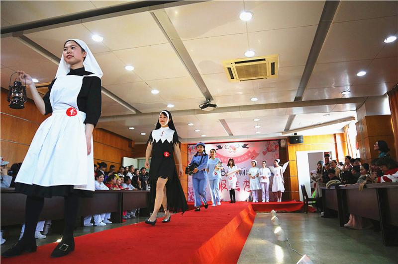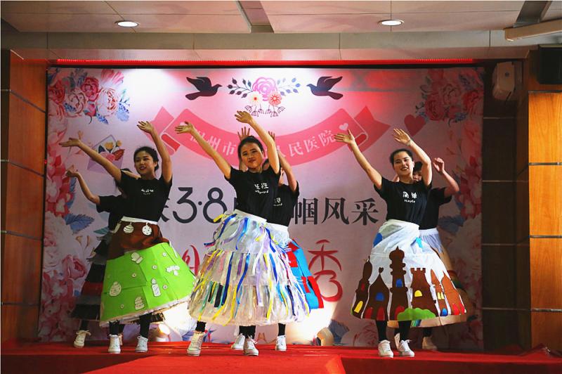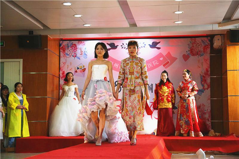 值得一提的是,许多节目中融合了卫计文化,如利用护士服的演变展现护理文化的发展变化,又如以“安检”为主题的服装秀蕴意着医疗单位严格执行“九不准”精神的落地,还有发挥“心理卫生”特色以康复员绘画图案的环保裙装等等,这些看似仅仅表达服装秀的不同主题,却展现了医院女职工严谨工作态度和美好生活的热爱,营造出了缤纷多彩的医院文化氛围。