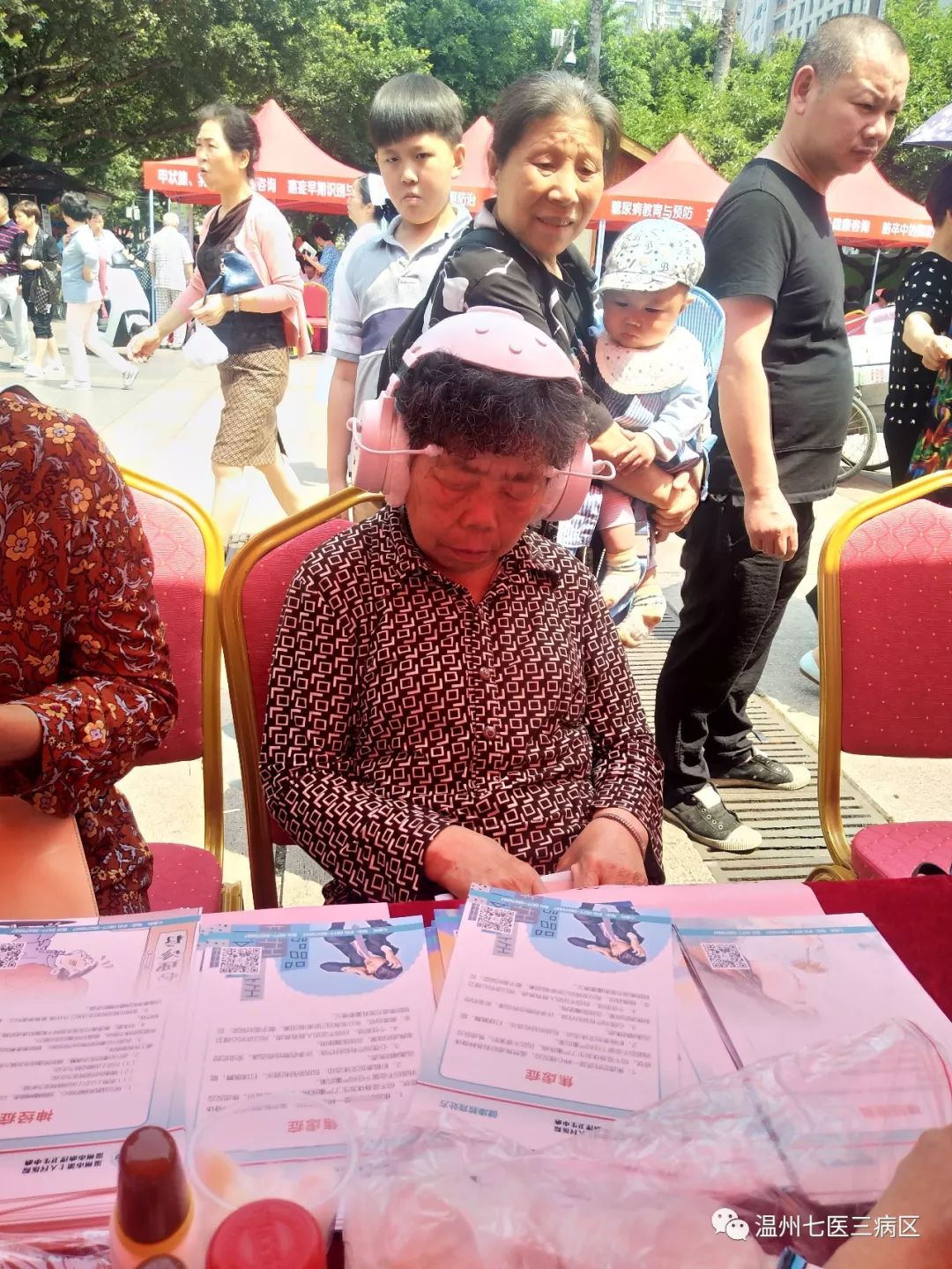不少市民纷纷被失眠所困扰,护理志愿者陈曼为市民进行心理辅导,并帮助其体验“睡眠治疗仪”的功效。