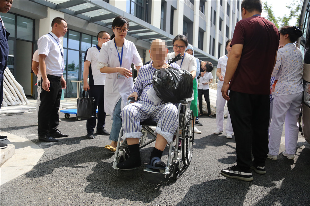 这位老年科患者看到崭新的病区环境,又看到这么多医护、行政人员为他们的安全转移奔波,脸上堆满了笑容,感激之情溢于言表。医护人员的“大行动”也得到了病人和家属的一致认可。