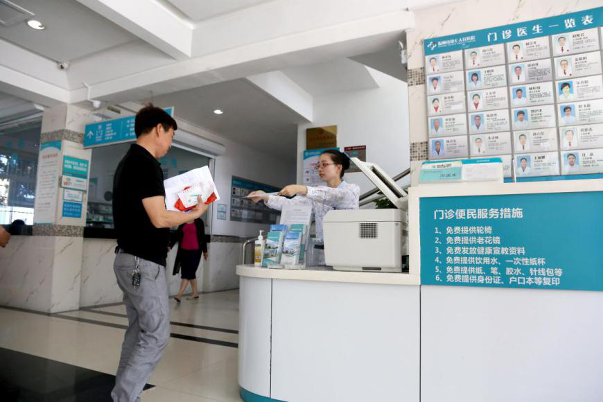 完善便民措施。改善病人就诊环境,门诊楼加装电梯,增设温馨诊室、候诊室等,大厅内配备手机充电器、老花镜、轮椅等无偿供给患者使用,从细节入手的“有效关怀”,提高群众在就诊过程满意度。