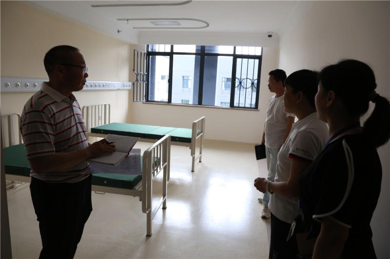 “我们医院正在筹划建设一所新医院,想来同行并有成功经验的建设院区取经,取其精华去其糟粕。”吴永胜在随后查看新院区过程中边走访边了解。期间,一行人从医院大楼的层高设计,防水漏水计划,细微到门把手、门锁、配电间、吸烟区,甚至是厕所的地板、门、锁设计等详细进行了解。姜德国、方春霞边陪同检查,边将我院建设过程中的经验、困难,以及建设过程中的重点注意事项进行详细介绍。