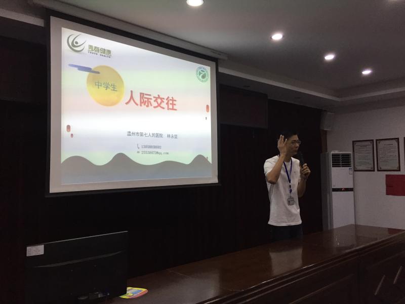 日前,我院医生兼市青春健康教育主持人林永坚以及防治科心理咨询师林晓曙一行走进温州市鹿城区未成年人心理健康成长中心,开展了主题为“绘画治疗”团辅和“人际交往”的青春期知识讲座。本次活动主要是针对双屿街道康龙社区内的初中同学开设,参与人数达70人。