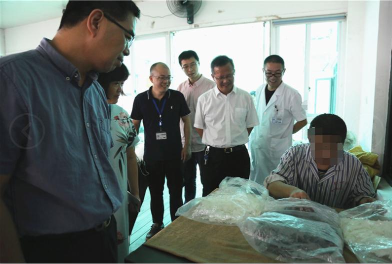 在市七医龙湾院区,调研组就病区人防、技防、物防等安全管理方面进行了解走访,并就龙湾院区门窗安全防护以及病人康复、服药、防冲动防护措施等内容进行详细询问。在病房内,一名患者正在专心致志地绘画,程锦国还上前与患者开展交流,并和他讨论绘画康复治疗效果。随后,调研组一行来到潘桥院区,走访了该院区的消控室,查看了院区监控系统运行情况,并来到病房查看重管室的监管流程措施。在实地走访查看完毕后,调研组还召开了“医院安全管理活动”座谈会。