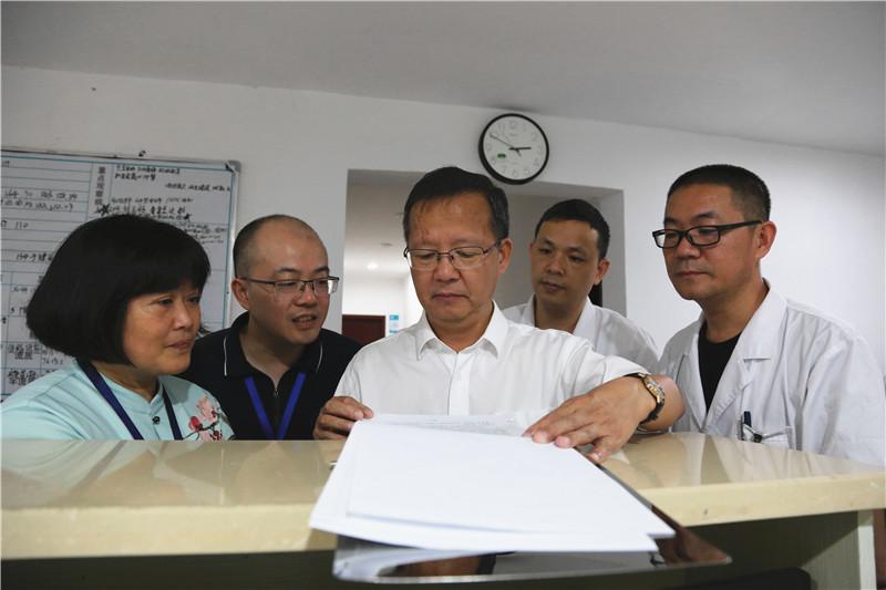 市卫计委上周启动了全市“医院安全管理月活动”,那么,各大医院在安全管理活动中的各项要求是否启动、落实情况如何?今天下午,市卫计委党委书记、主任程锦国,市纪委驻市卫计委纪检组长赵新华,在医政医管处处长郑云蒸、办公室主任张银樊的陪同下,赴市七医调研医院安全管理活动开展情况。