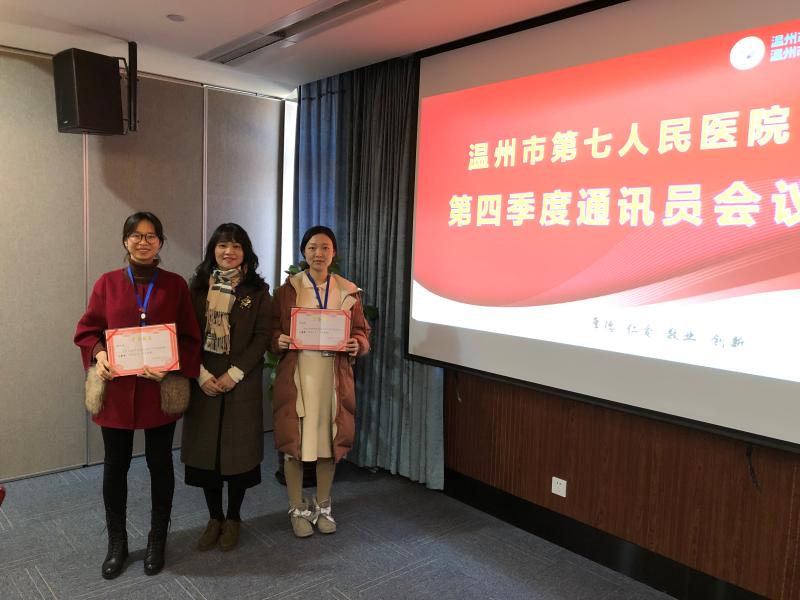 会议通报了我院各科室、病区2018年度新闻宣传信息报送情况,全年院办共收到各科室、病区报送信息983条,医院门户网站(外网)共采用信息236条、内网共采用信息764条。其中被国家级刊物:《健康报》、《中国人口报》、《新华网》、《人民日报海外网》录用13篇;被省级媒体刊物:《健康浙江》、《浙江新闻》录用18篇;被市级媒体:《温州晚报》、《温州都市报》、《温州日报》共录用131篇;被市卫计委网站、《健康温州》公众号、《健康温州报》采用信息65条。最后,陈春棉对2018年度宣传先进科室、先进病区和先进个人三个奖项进行了颁奖。