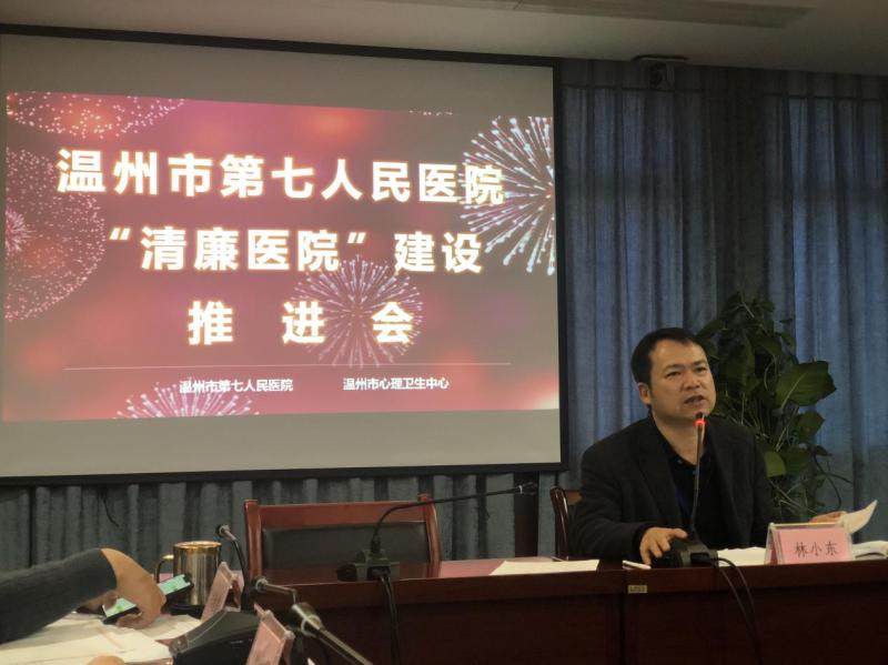 为了贯彻落实“清廉医院”建设,进一步加强我院行风建设和廉政建设,推动全面从严治党在我院向纵深发展,在我院形成“以清为美、以廉为荣”的价值取向,努力建设党风清正、院风清朗、医风清新的清廉医院。12月11日下午,市七医在潘桥院区四楼1号会议室召开清廉医院建设工作推进会,认真贯彻落实全省清廉医院建设培训会精神,分析当前面临的严峻复杂形势,研究部署下一步工作。林小东院长充分肯定我院清廉医院建设目前取得的成效。他指出,12月6日,市卫健委召开的全市推进清廉医院建设会议,充分体现了市卫健委党委坚决贯彻省委建设清廉医院重大决定的高度重视,也是向全市卫健系统发出了坚决打赢反腐败斗争、涤荡歪风邪气、构建健康生态、建设清廉医院的总动员令。我院党委结合“不忘初心,牢记使命”主题教育,带领全院职工认真贯彻落实全省推进清廉医院建设培训会精神,深入推进“不敢腐、不能腐、不想腐”的领导机制和工作机制,为清廉医院、清廉温州建设建功立业。