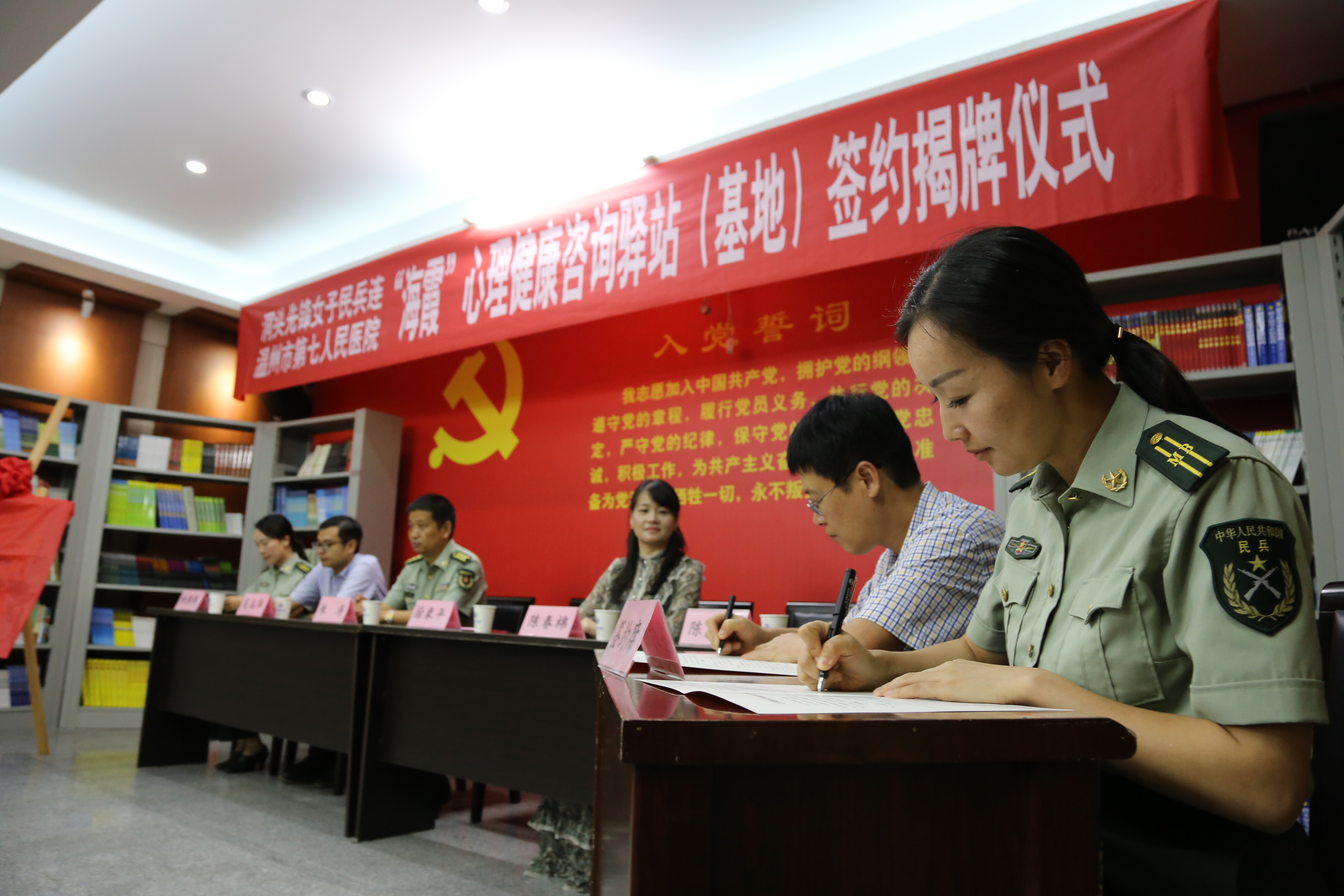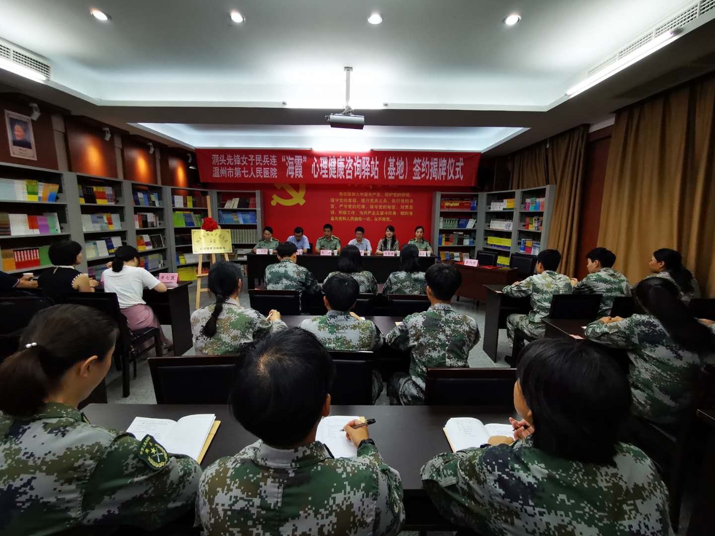 “驿站作为驻点心理咨询室,可以及时为女子民兵们‘烹制’心理健康套餐。”洞头区人武部政委朱涛在授牌仪式上表示,女子民兵用铿锵和坚毅守护着洞头海岛的一方平安,但姑娘们有的远离家乡,有的首次融入民兵生活,他们的身心都需要组织的关心和呵护。授牌仪式上,市七医党委书记徐象平、洞头区委宣传部常务副部长吴玉华一同揭牌。