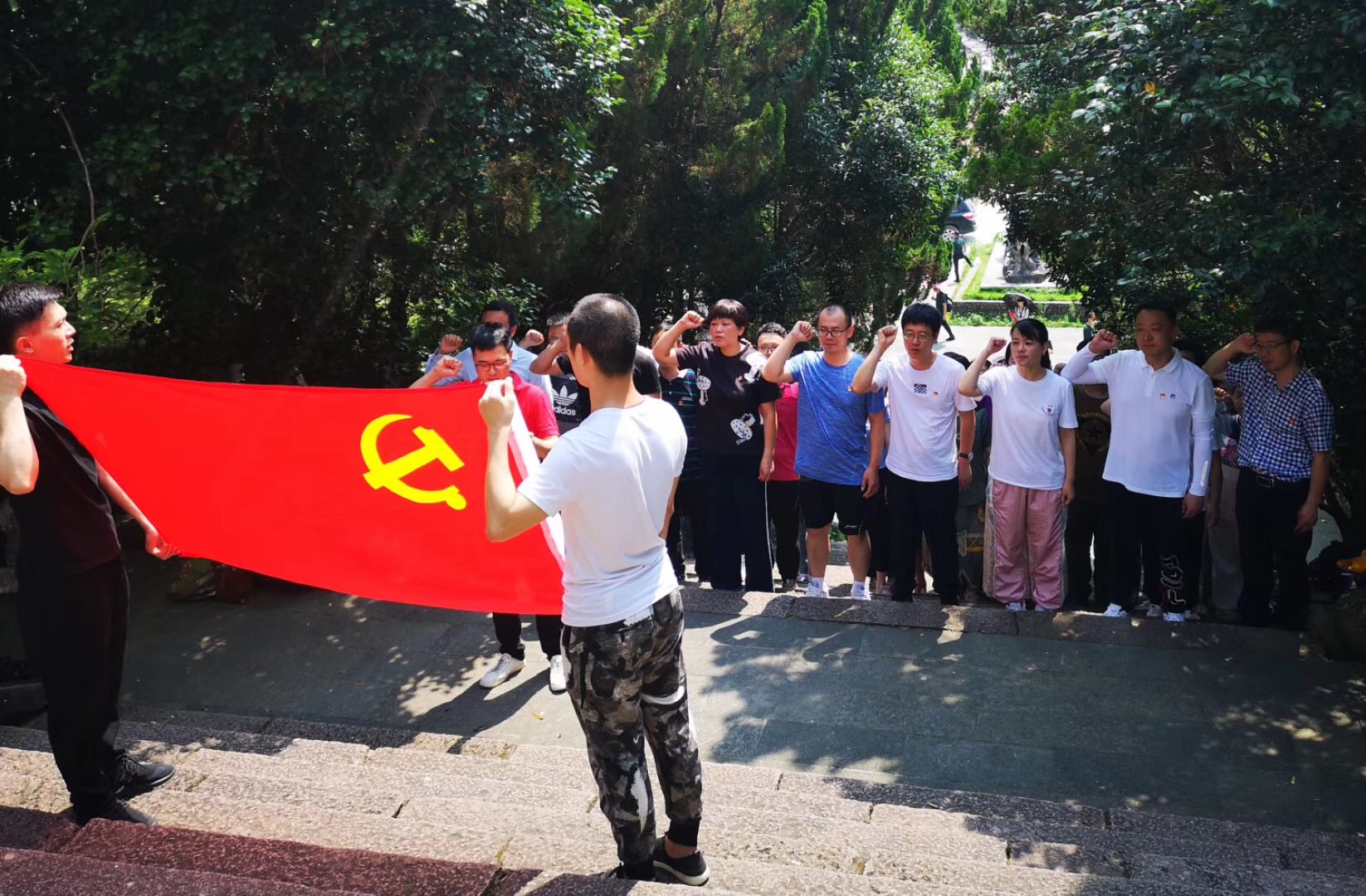 在“中国工农红军第十三军纪念碑”前,徐书记带领大家重温了入党誓词,全体党员怀着崇敬和庄重的心情,面向党旗,郑重宣誓,并借此机会提醒自己不忘初心,牢记使命。