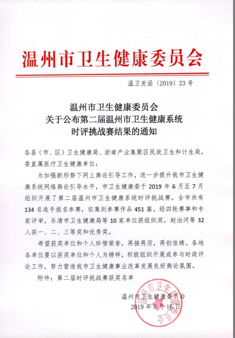 喜讯!市卫健委第二届时评挑战赛我院获佳绩