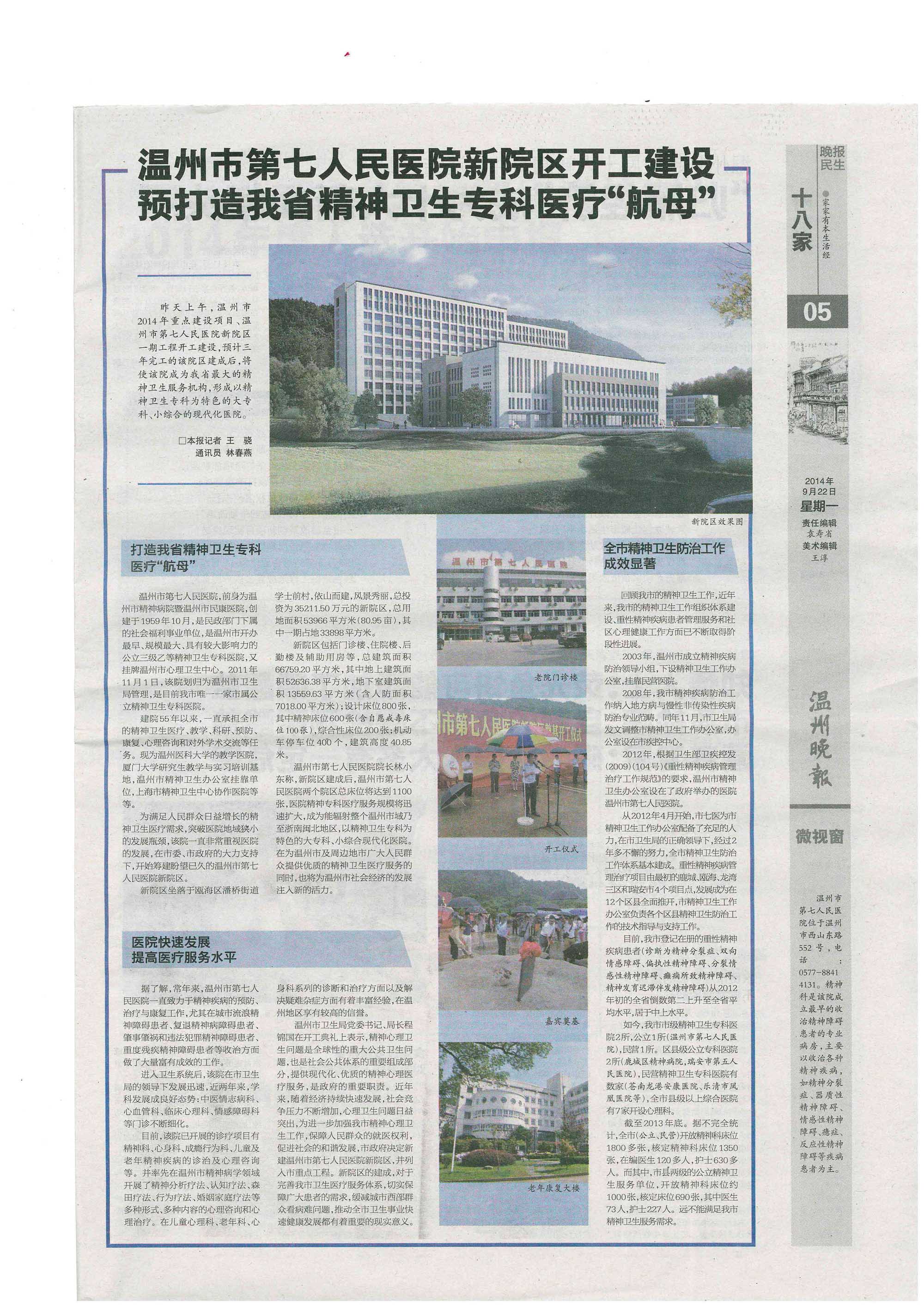 温州市卫生局党委书记、局长程锦国在开工典礼上表示,精神心理卫生问题是全球性的重大公共卫生问题,也是社会公共体系的重要组成部分,提供现代化、优质的精神心理医疗服务,是政府的重要职责。近年来,随着经济持续快速发展,社会竞争压力不断增加,心理卫生问题日益突出,为进一步加强我市精神心理卫生工作,保障人民群众的就医权利,促进社会的和谐发展,市政府决定新建禁漫天堂