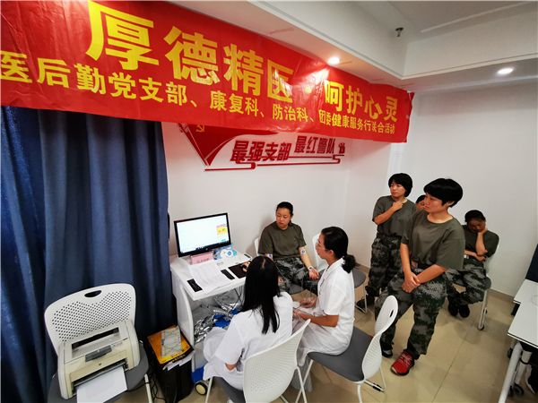 与往年的拥军慰问不同,今年的健康行中增加了心理健康档案建立这一特色项目。考虑到民兵连的姑娘们来着五湖四海,又远离家乡,而且是首次融入民兵生活。平日里高强度的训练作业下,需要建立一份独有的心理健康档案,为其铸就心理防御屏障。