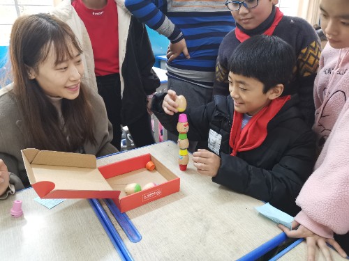 在工作处蔡雅老师宣布活动正式开始,学生们迅速的离开教室,奔向各活动区域。有些学生选择先观察各个活动的难易程度,再进行抉择;有些学生选择感兴趣的游戏直接参加;还要些选择为了早点换取奖品,选择人少的游戏参加。一时间学生操场、教室洋溢着学生们的欢声笑语。